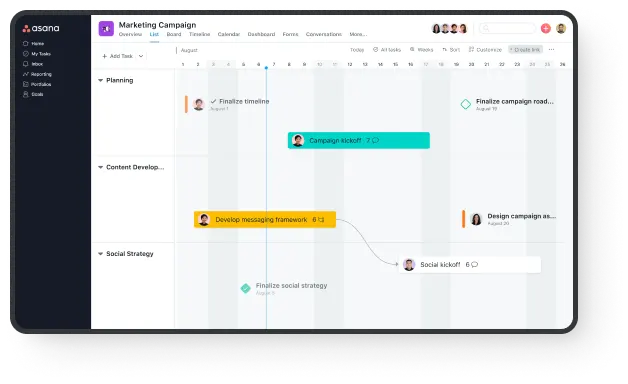 • Asana działa najlepiej, gdy wykorzystuje ją cała firma. To dlatego, że Asana może scentralizować i łączyć pracę wielu działów. Jej funkcje usprawniają współpracę międzyfunkcyjną i umożliwiają zespołom wspólne osiąganie celów.